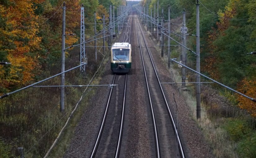 Von Britz nach Chorin verläuft die Berlin-Stettiner Eisenbahn geradling über einige Kilometer und ist dadurch von der Brücke in Chorin Dorf gut einzusehen. Gut zu fotografieren ist sie aber trotzdem nicht. Es stört die Fahrleitung mit ihren Masten. Und da die Strecke von Südwest nach Nordost verläuft, liegt sie an sonnigen Tagen im Gegenlicht und an den anderen Tagen wird das Licht schnell knapp.