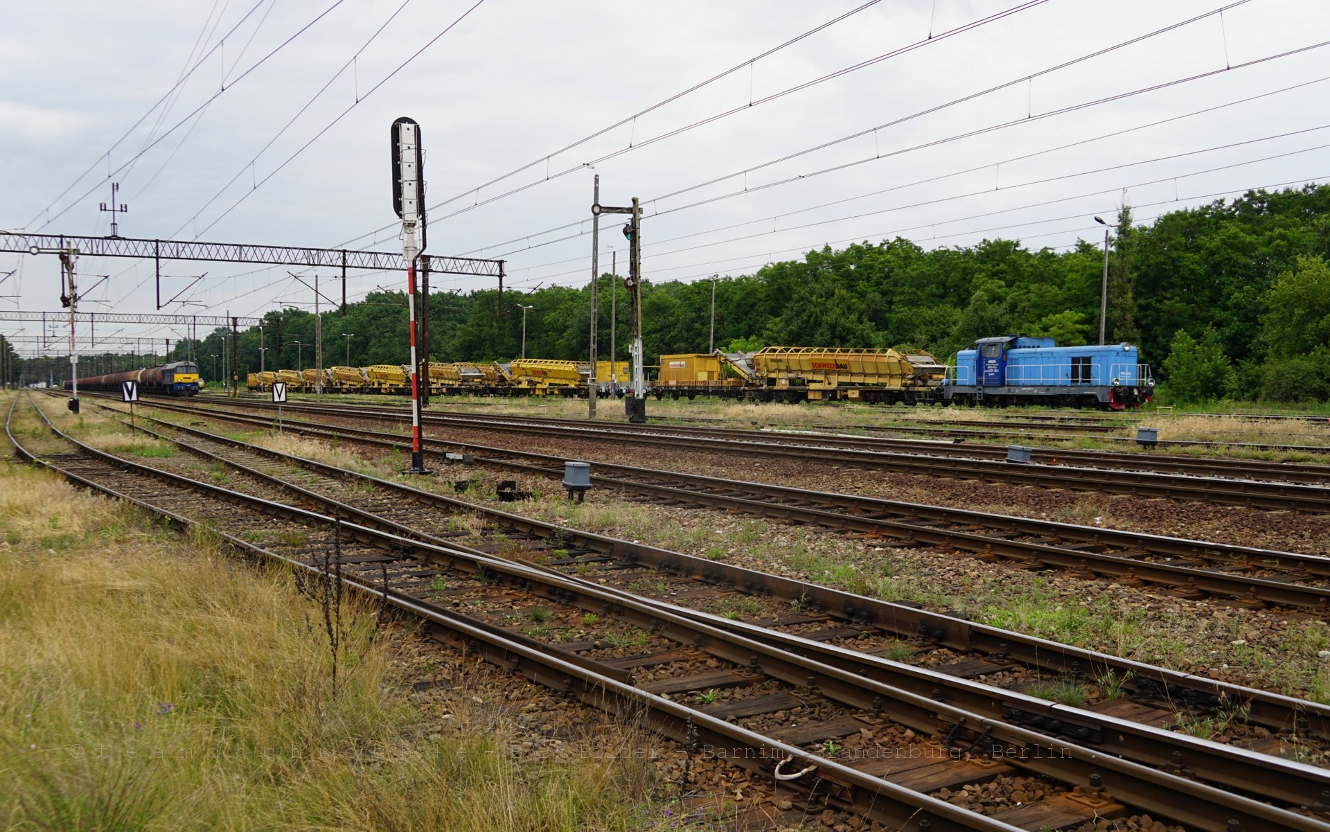 Der Blick von der Bahnhofsbrücke in Eberswalde ist eigentlich immer gleich und immer interessant, aber zu einem Foto kann ich mich doch nur manchmal durchringen. Heute war es die gelbe V100, die meine Aufmerksamkeit auf sich zog. 92 80 1293 010-5 als Bauzuglok im Bahnhof Eberswalde.