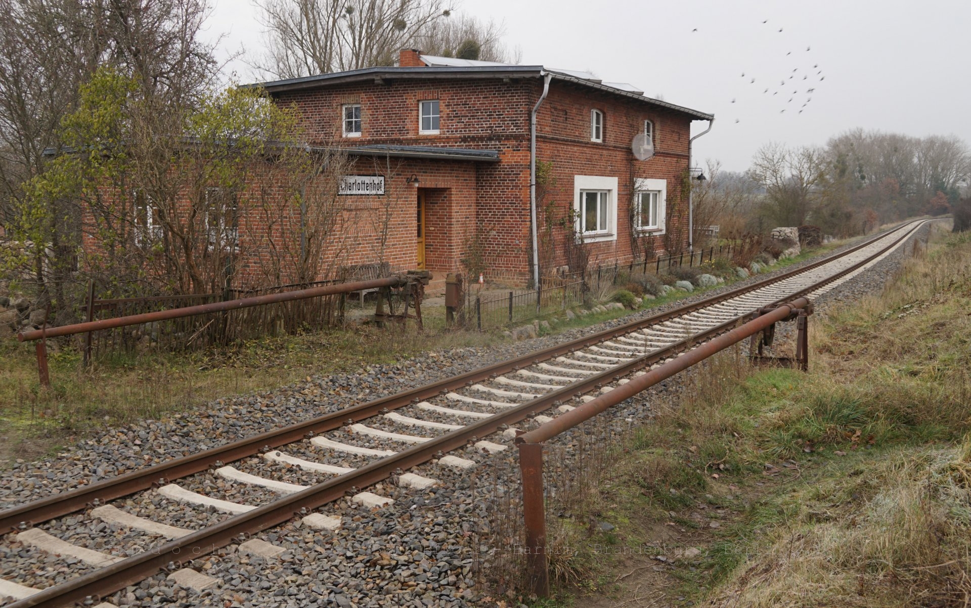 Ein Bild vom ehemaligen Bahnhof / Haltepunkt Charlottenhof an der Bahnstrecke Parchim–Neubrandenburg (auch Mecklenburgische Südbahn genannt). Der Bahnhof befindet sich am Rand des Dorfes Kargow.