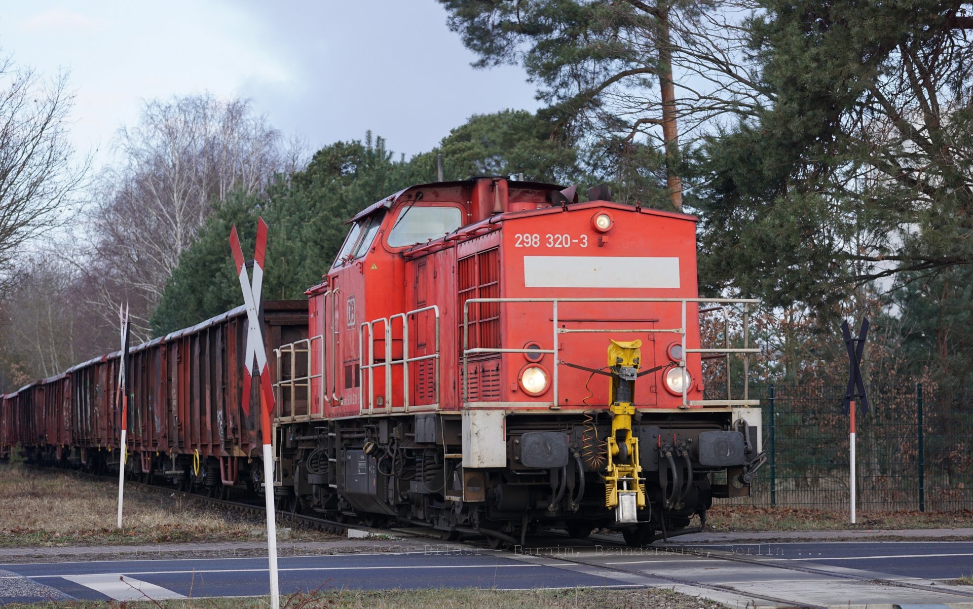 298 320-3 mit einem Güterzug auf der Eberswalder Industriebahn