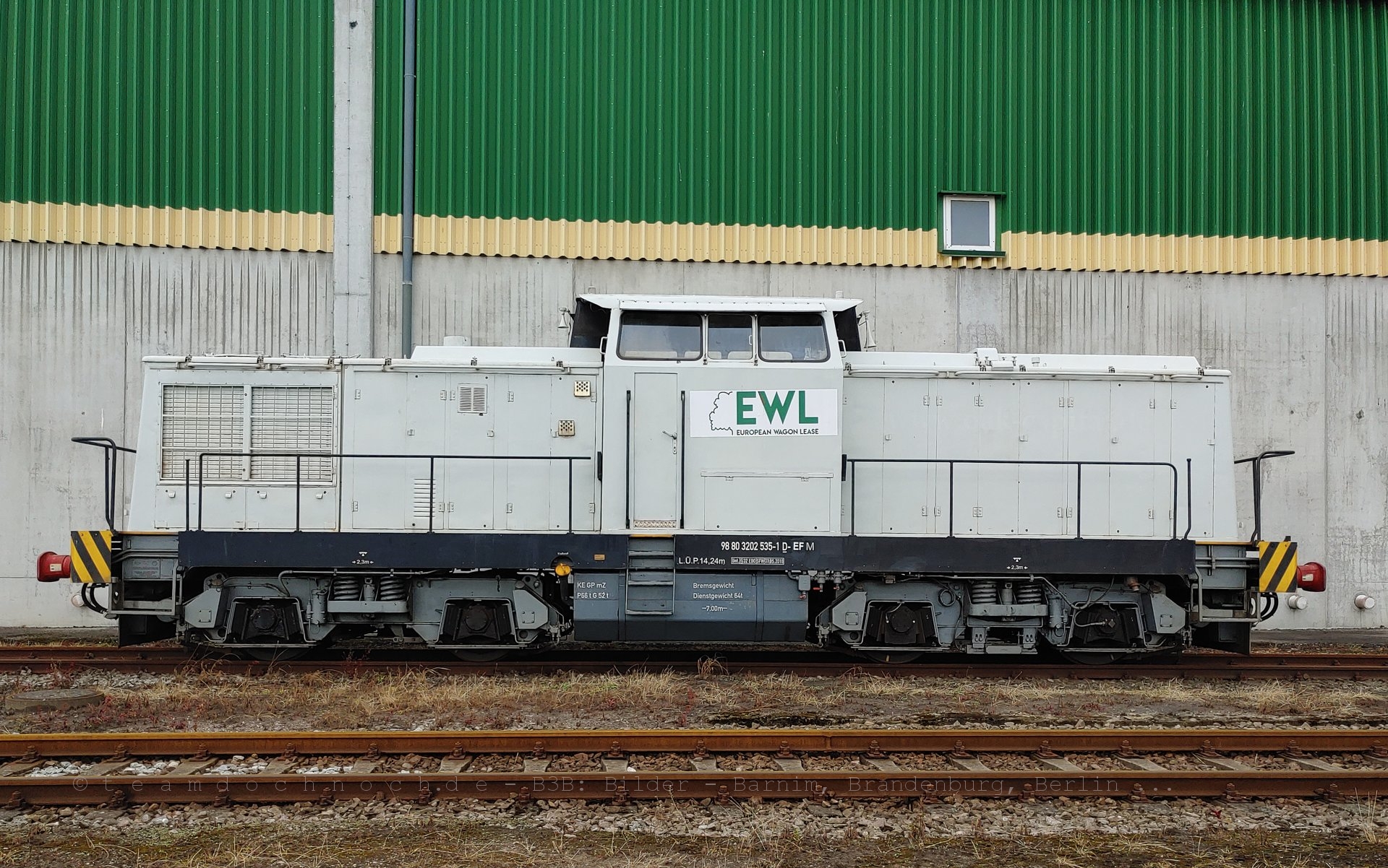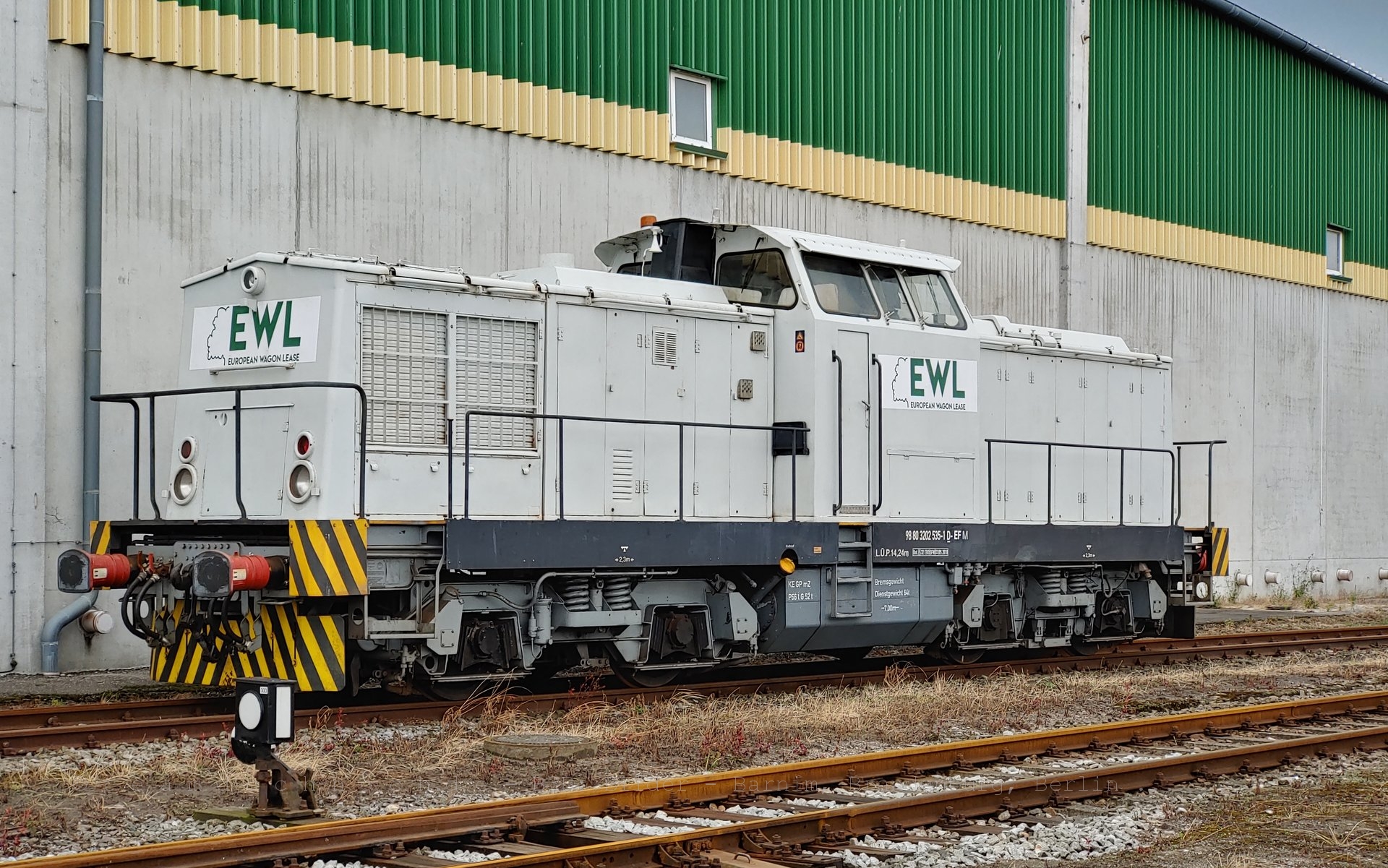 Bei der grauen Lok handelt es sich um die Lok 98 80 3202 535-1 D- EF M von EWL (European Wagon Lease).