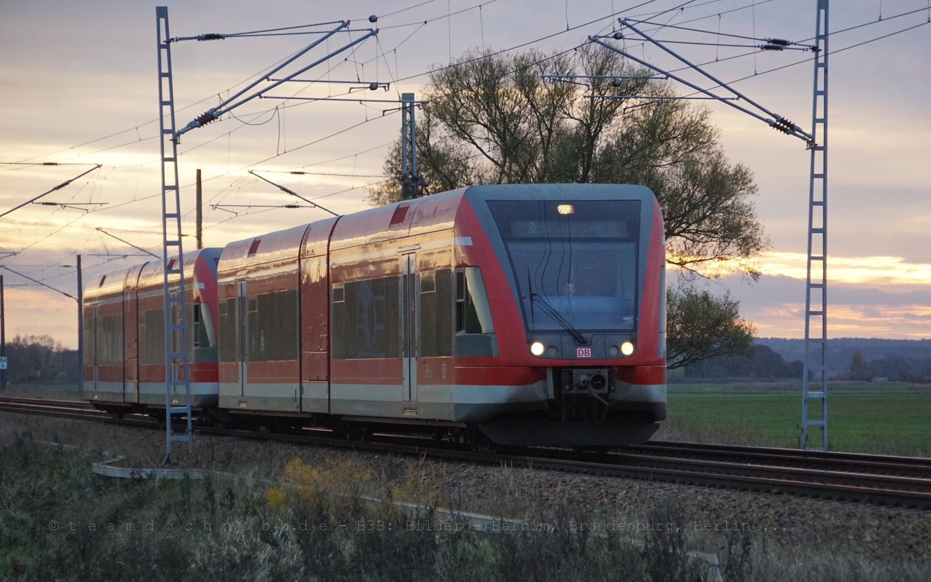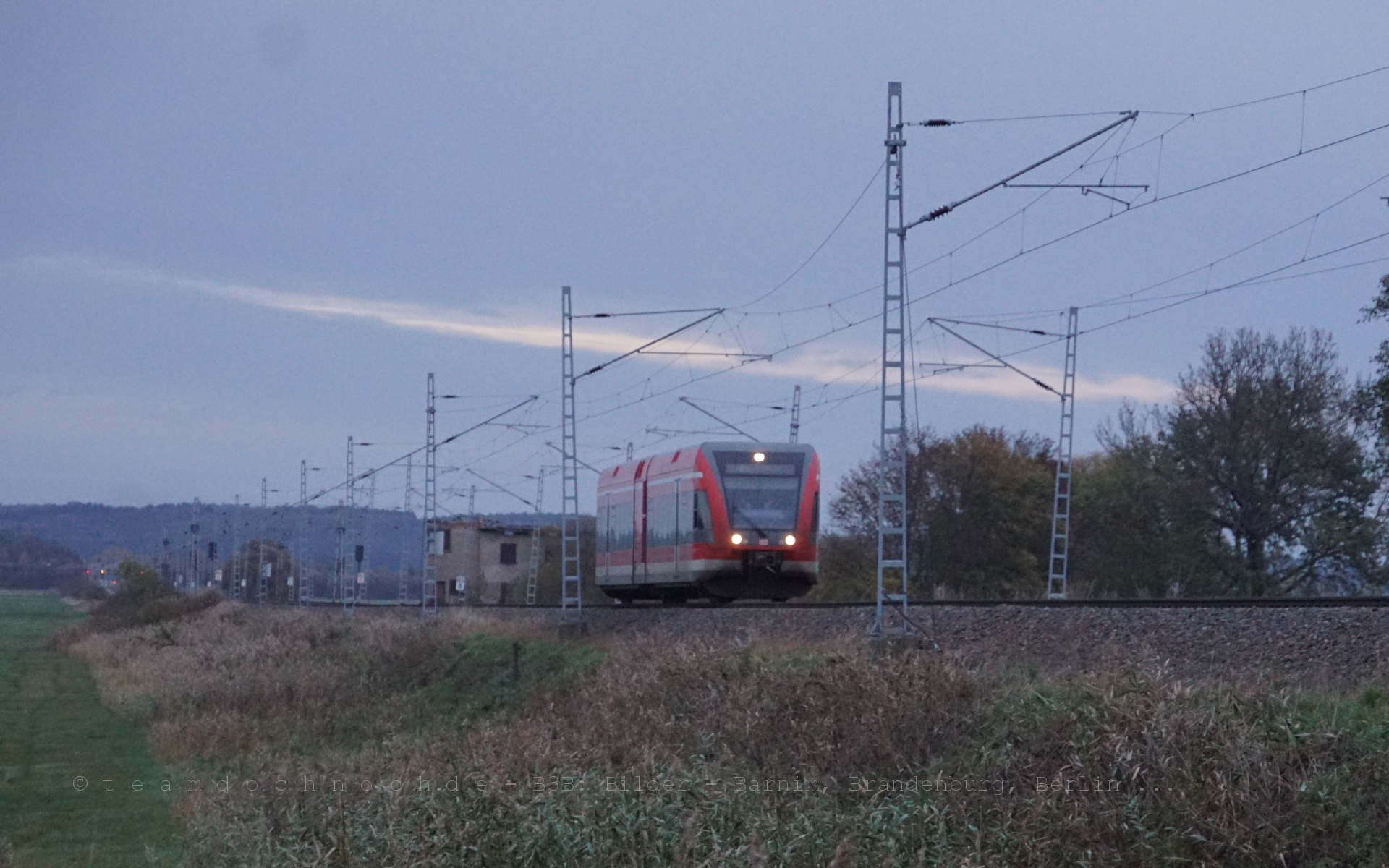 In der Dunkelheit ist es immer die Frage, ob man starke Verpixelung oder Bewegungsunschärfe weniger schlimm findet. Für den RE 66 (RE 5802 nach Szczecin Glówny) entschied ich mich heute in Passow für weniger deutliche Pixel. Der Zug war erstaunlich gut gefüllt und in Passow stiegen sogar einige Passagiere aus.