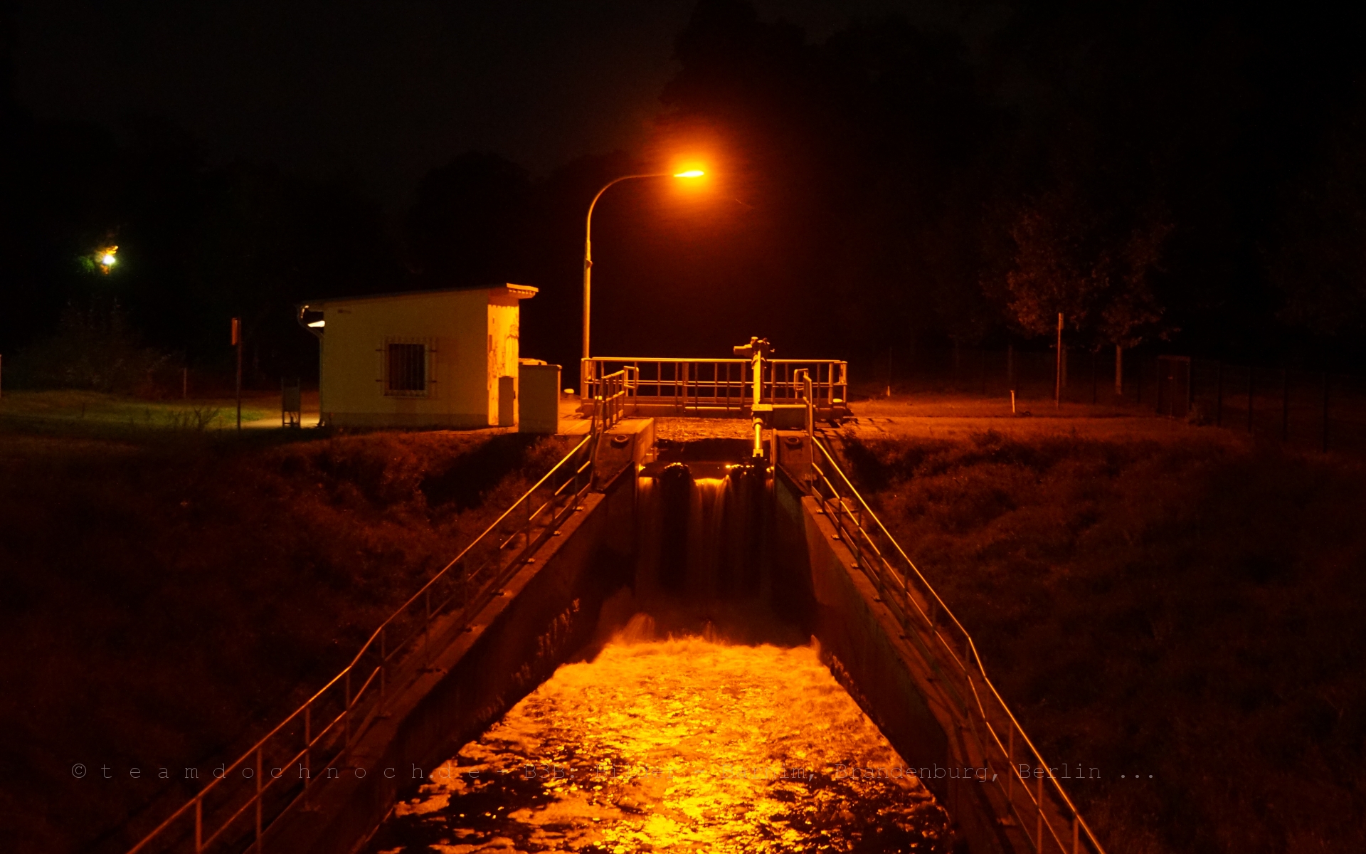 Seit Anfang des Jahres fällt im Vergleich zu „normalen“ Jahren sehr viel Niederschlag im Barnim. Obwohl die Region eigentlich jeden Tropfen gebrauchen kann, ist es aber doch fast schon zu viel. Denn nicht nur am Finowkanal, wie hier am neuen Wehr Heegermühle, sind die Wehre maximal geöffnet und schaffen den Abfluß nur gerade so.